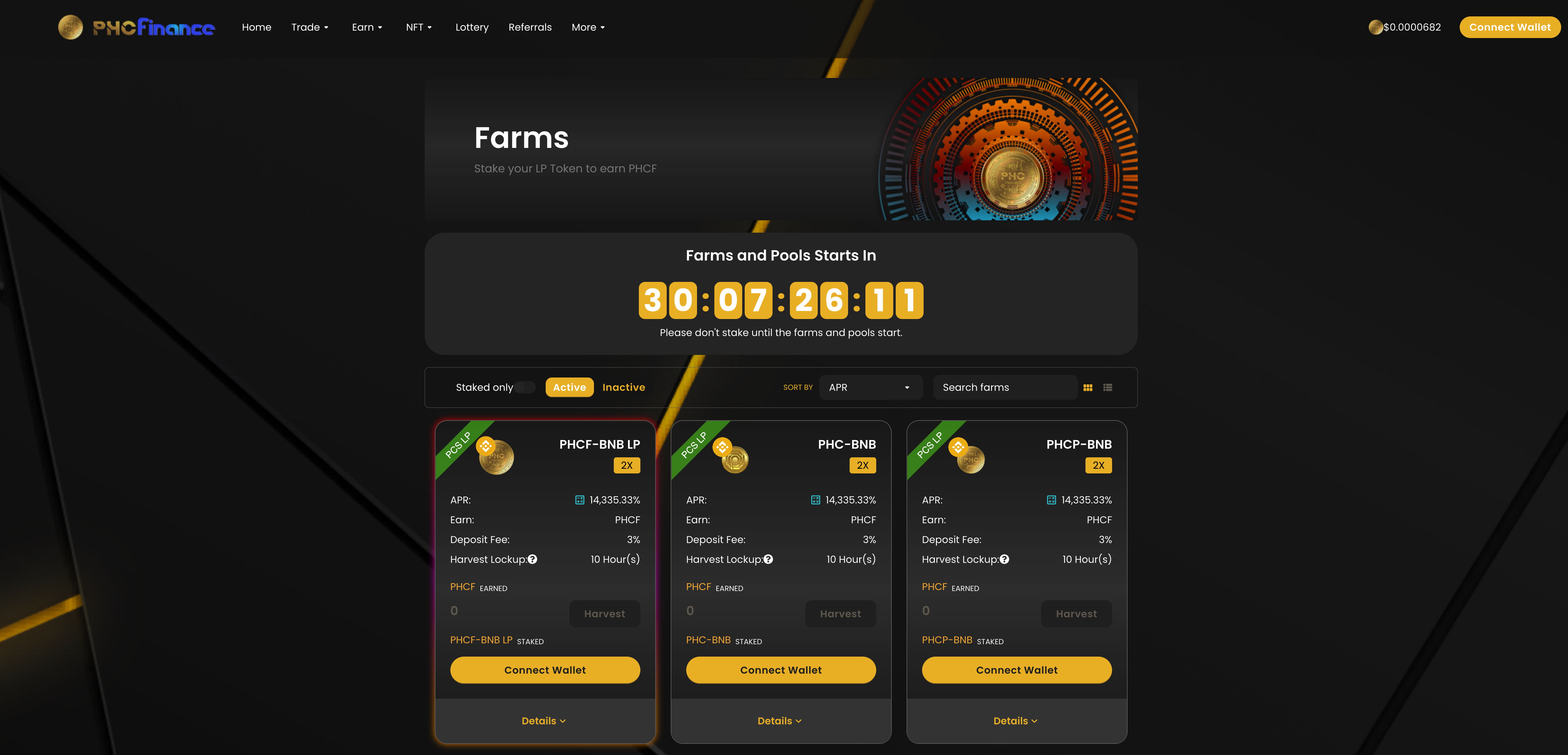 PHCF is the reward token of the DeFi [phcfinance.me](https://https/phcfinance.me) platform, the Pools and Farms will go into production on October 1, 2022, before the launch of the Pools and Farms a Pre Sale with whitelist will be carried out and on the same day an ILO (Initial Liquidity Offering ) details will be published prior to the date indicated.